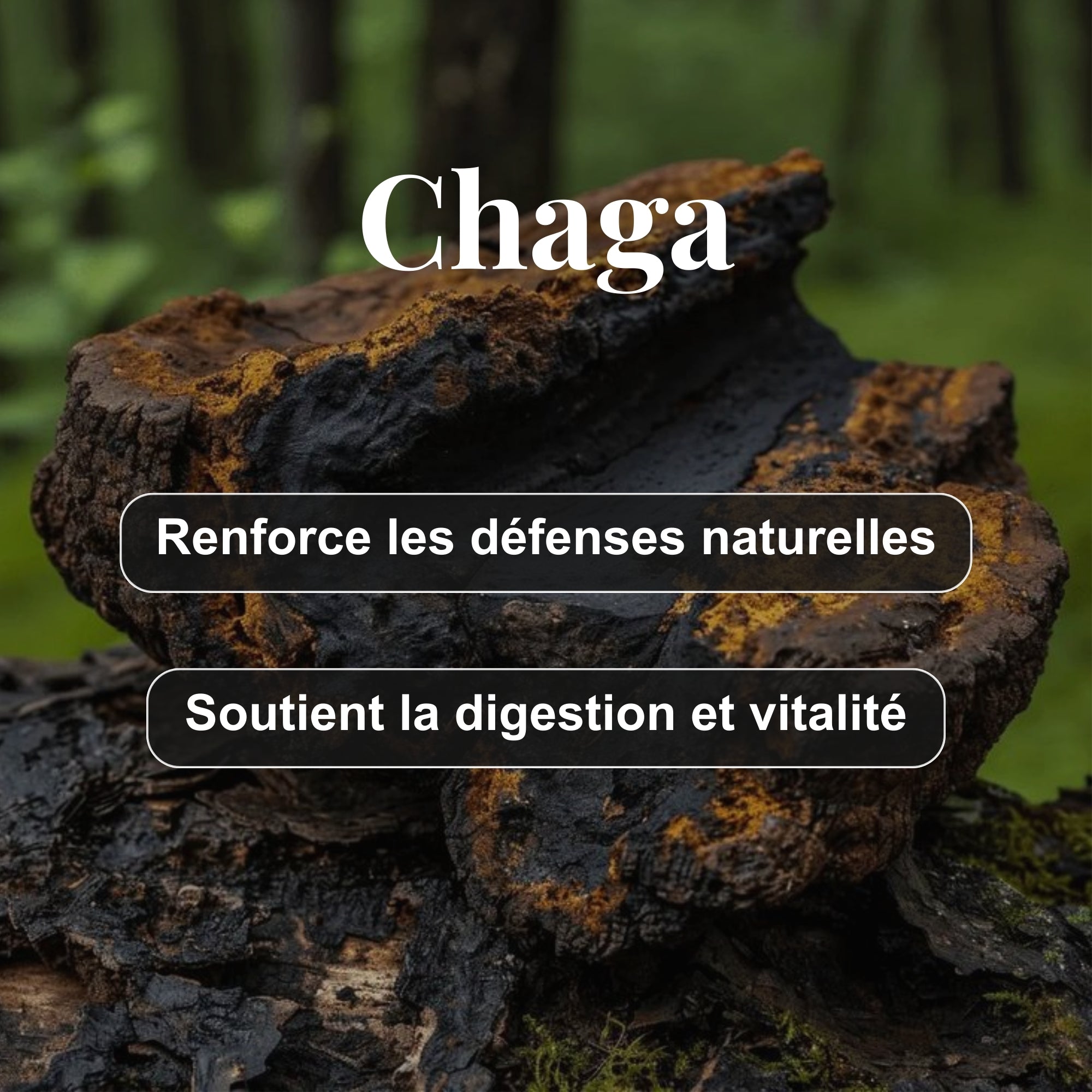 Super Chaï : Poudre de cacao maigre, extrait d’hydne hérisson (Hericium erinaceus), extrait de reishi (Ganoderma lucidum), extrait de chaga (Inonotus obliquus), extrait de racines d’ashwagandha (Withania somnifera)