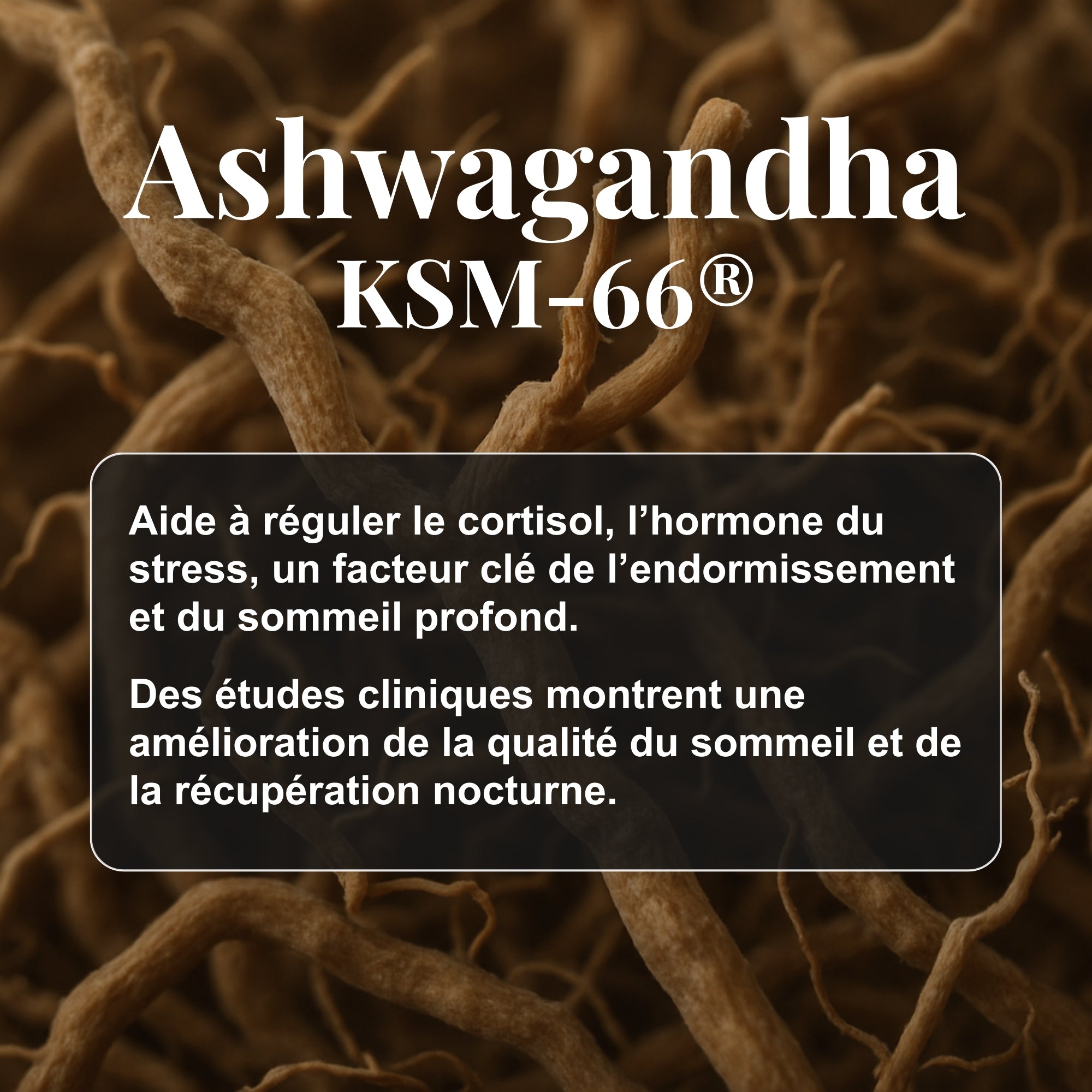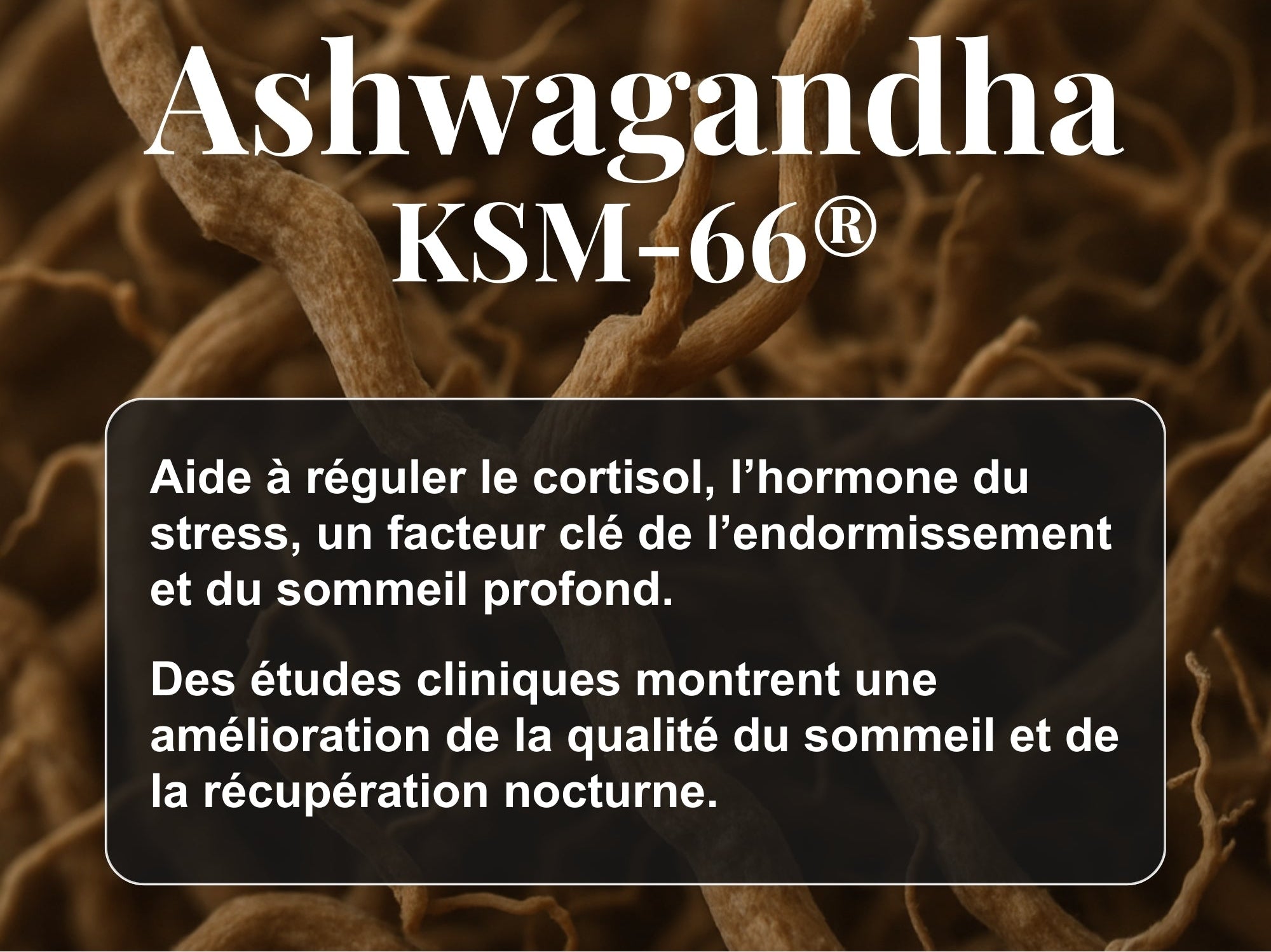 Un adaptogène cliniquement étudié qui réduit le cortisol (l'hormone du stress) pour renforcer la résistance au stress et favoriser un sommeil profond et réparateur