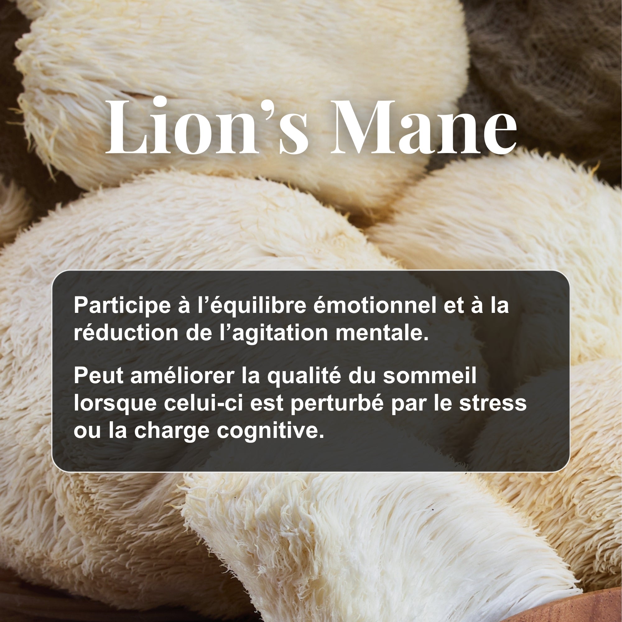 Super Chaï : Poudre de cacao maigre, extrait d’hydne hérisson (Hericium erinaceus), extrait de reishi (Ganoderma lucidum), extrait de chaga (Inonotus obliquus), extrait de racines d’ashwagandha (Withania somnifera)