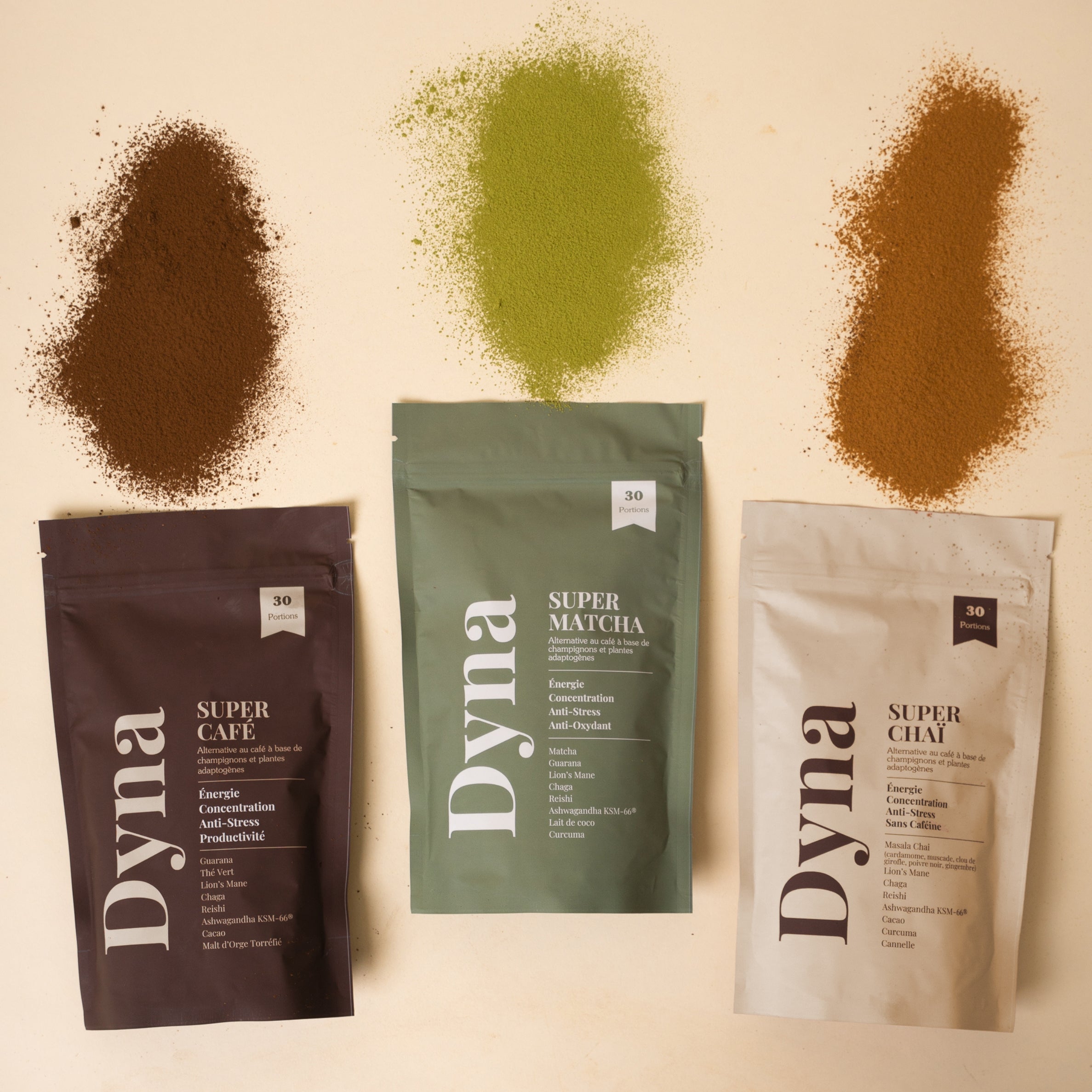 Découvrez nos coffrets Dyna : l’occasion idéale de tester nos trois recettes phares – Super Café, Super Matcha et Super Chaï